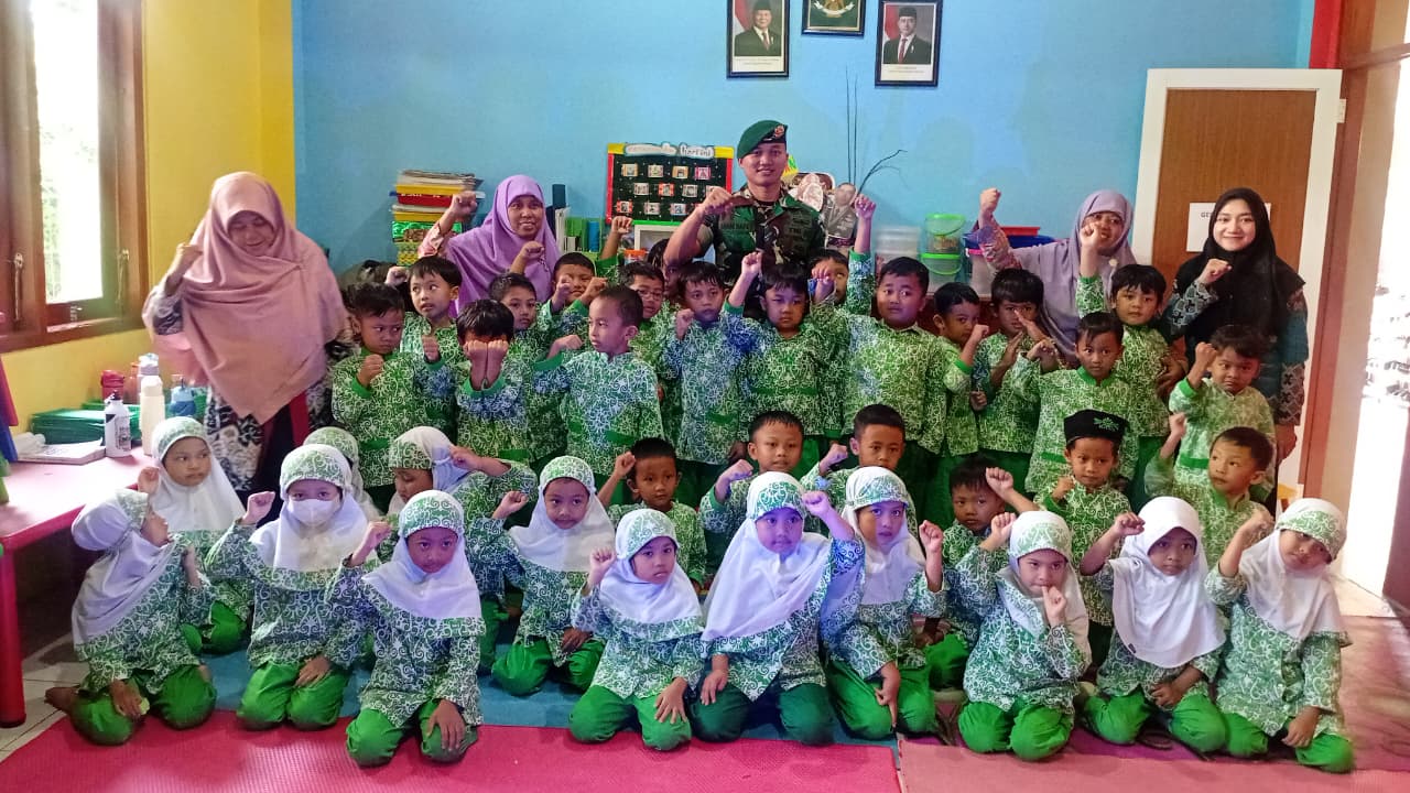 Suasana kelas tampak hidup ketika Kopda Imam Safe’i memperlihatkan beberapa perlengkapan dasar yang digunakan dalam tugasnya. Beliau juga mengajak anak menyanyi Lagu "Dari Sabang Sampai Merauke" serta mengajari anak-anak yel-yel yang penuh semangat.